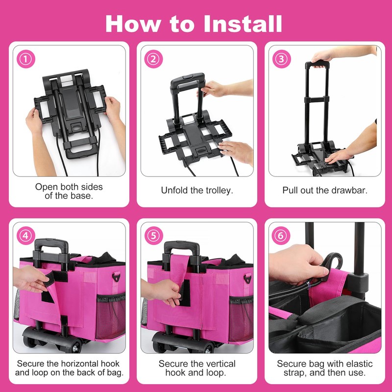 - 【Portable Detachable Trolley】 Our cleaning caddy bag comes with a trolley to help you solve the problem of carrying too much weight while walking. The cart is detachable and can be adjusted to different heights to suit more needs, up to 37.2"/94.5cm, besides, it can be folded to save space when not in use.