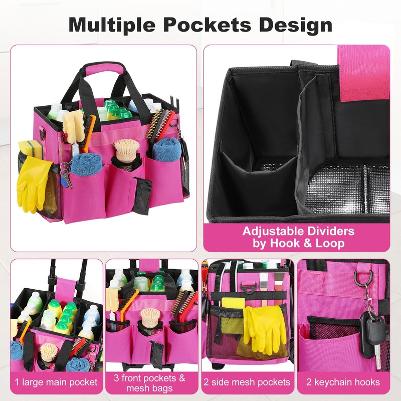- 【Multifunctional Organizer】 The large holding space, divider section and multi-pocket design make it easy to store and organize cleaning supplies of most shapes and sizes, perfect for housekeepers, cleaners and housekeeping staff. It can also be used as an organizer for office cleaning, car care supplies, gardening tools, painting supplies, repair equipment, picnic items, etc.