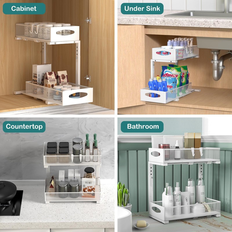 Wide Application: Neatly organize various things, save more space for under sink, kitchen counter, bathroom, pantry, etc.