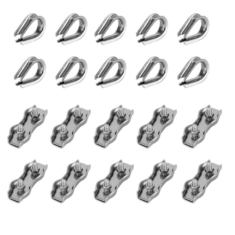 - Package: 10 pieces wire rope clamps + 10 pieces thimbles