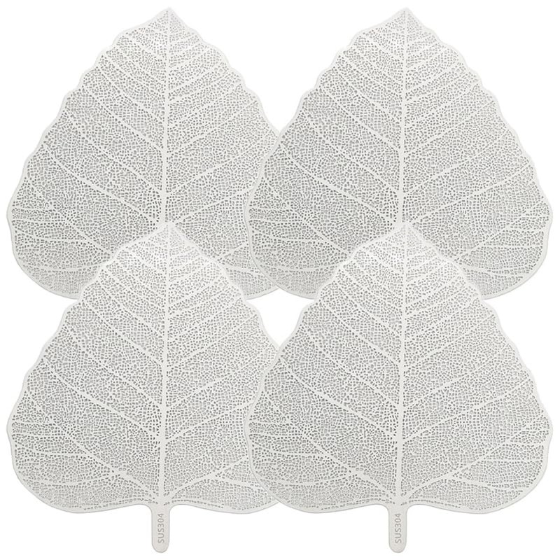 Housoutil 4PCS Stainless Steel Tea Infuser Pads, Leaf-Shaped Mesh Strainer for Tea Room, Silver, 4.52 X 3.93 X 0.03 Inches
