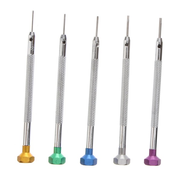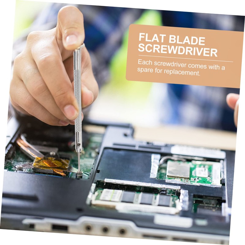 glasses screws With comfortable-to-grip handle and easy to use, it is really a wonderful precision screwdrivers kit for choice.Screwdriver repair tools The item is a set of 5pcs professional and practical flat slotted screw drivers in different sizes, which are mainly made of durable hard steel material, and perfect for repairing watch, changing batteries and the clamp eyeglass frames, etc.Electronics Screwdriver Besides, each screwdriver is equipped with a spare for replacement