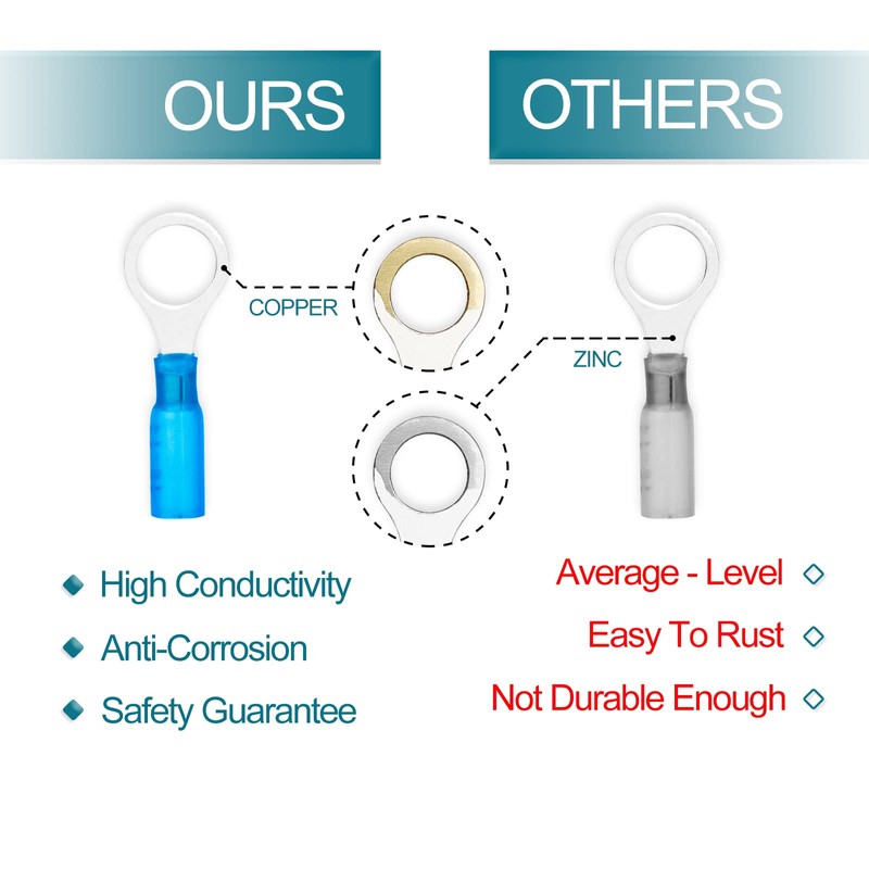 • Anti-CorrosionTinned coating, Heat Shrink Wire Connectors have corrosion resistance.