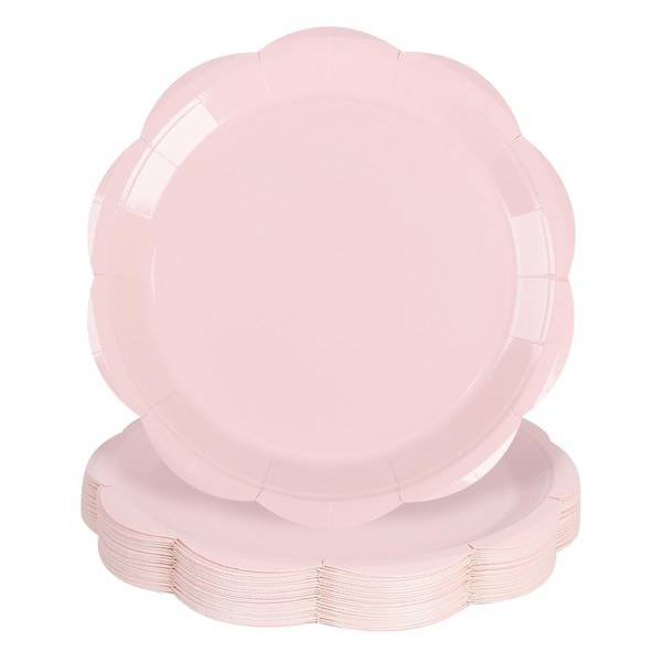 Houuqe 30pcs Pink Party Plates Scalloped Paper Plates 9 Inch Disposable Cake Plate for Wedding Baby Shower Birthday Party Bridal Party Supplies (Pink) | Houuqe