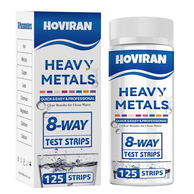HOVIRAN 8 Way Heavy Metals Water Test Strips -125 ct Home, Well Drinking Water Testing Kit for Iron, Mercury, Copper, Lead, Chromium, Magnesium, Cadmium, Calcium
