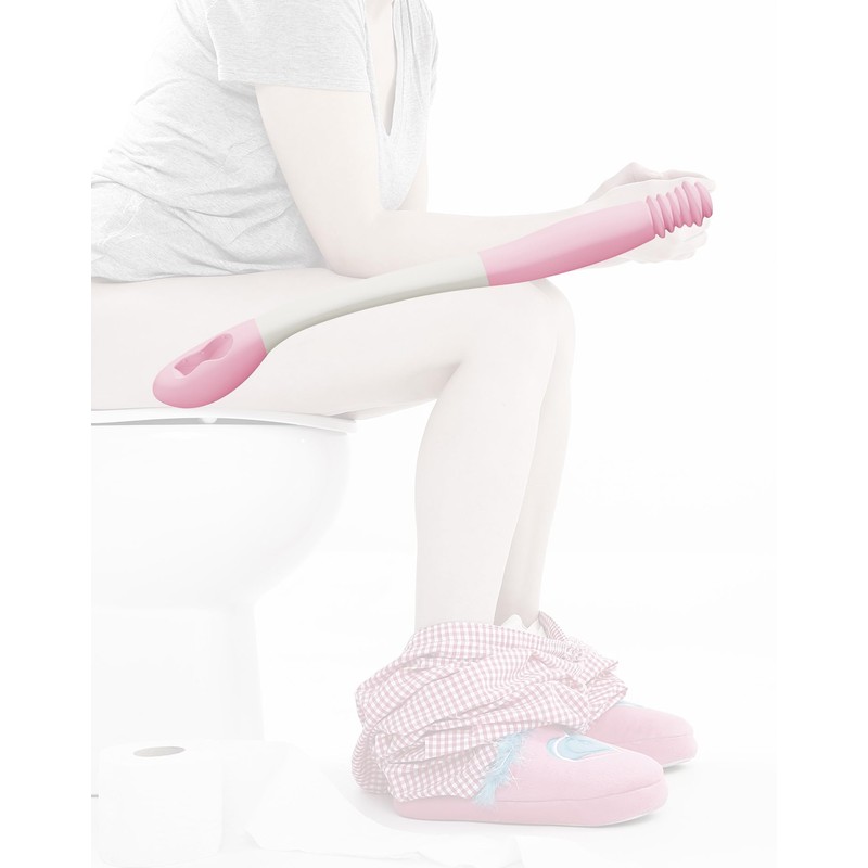 Hovluz Butt Wiper Tool, 15.7" Comfort Wipe Toilet Aid for Wiping Bottom, Bottom Buddy Wiping Aid for Disabled, Elderly, Overweight, Pregnant People, Easy to Use Bottom Buddy Wiping Assist Tool Pink