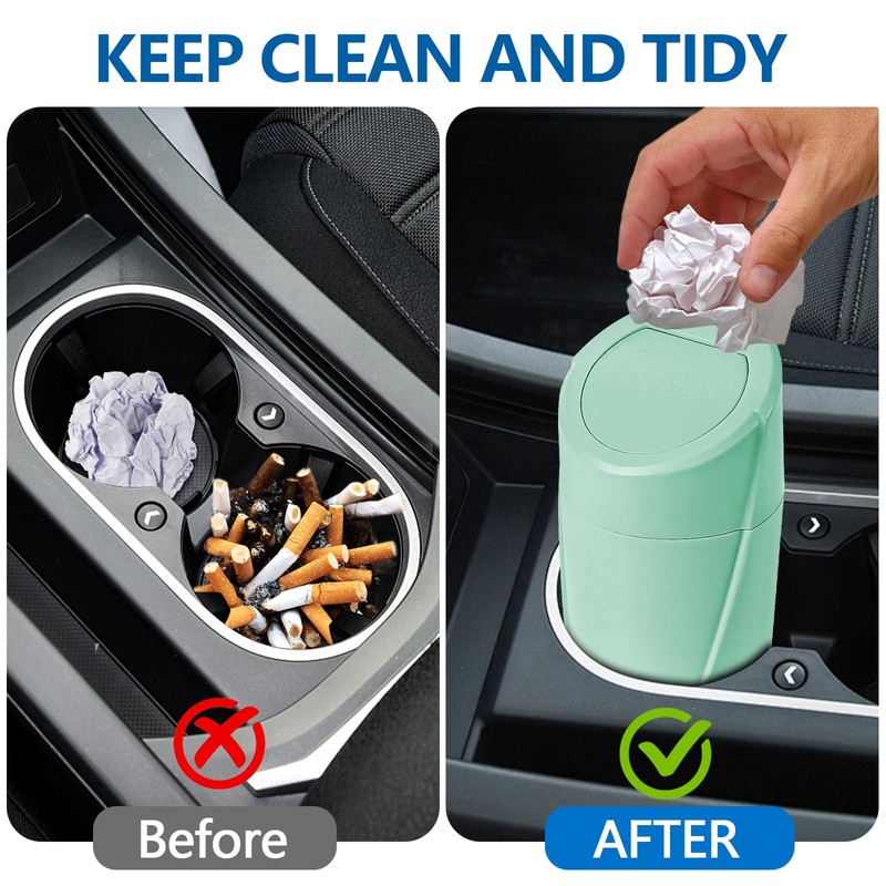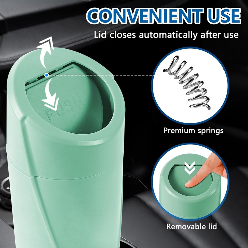 - 【Convenient & Attractive】: This small trash can is equipped with a spring-loaded lid that allows for easy tossing of trash with a gentle push, and it will automatically spring back when released. Moreover, it has a simple and stylish look and various color options, which can enhance the car's interior style and show your personal taste.