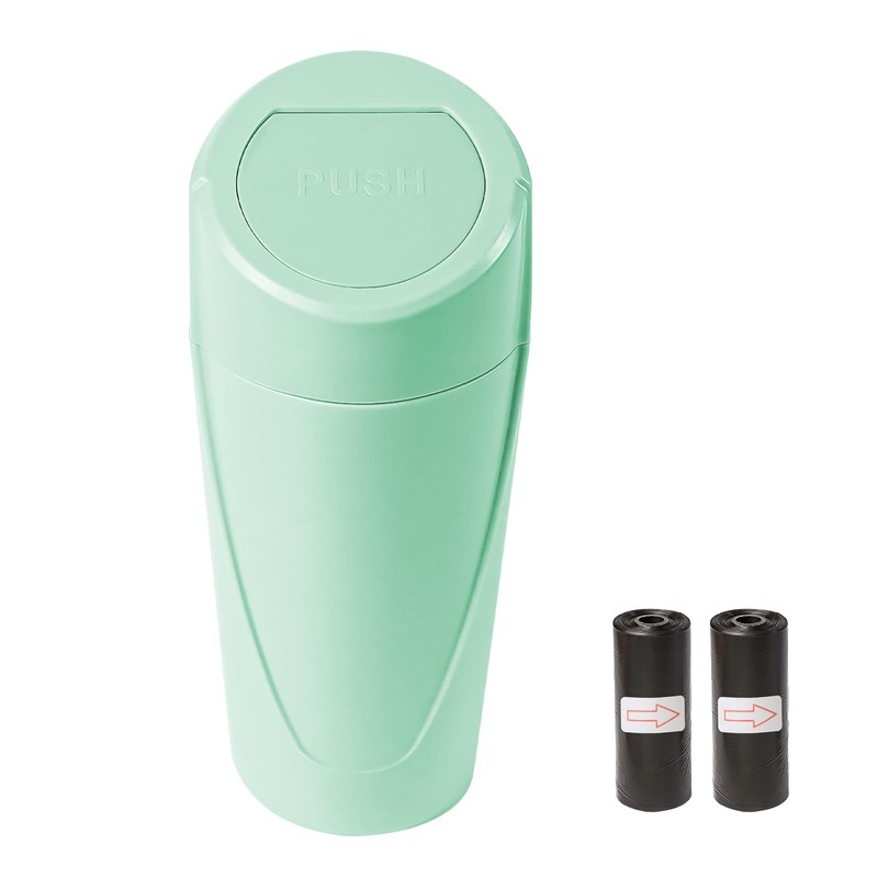 Hovom Mini Car Trash Can with Lid, Portable Garbage Can for Car, Leakproof Cup Holder Automotive Garbage Bin with 2 Rolls of Trash Bags, Small Trash Storage Can for Car Home Office(Light Green)