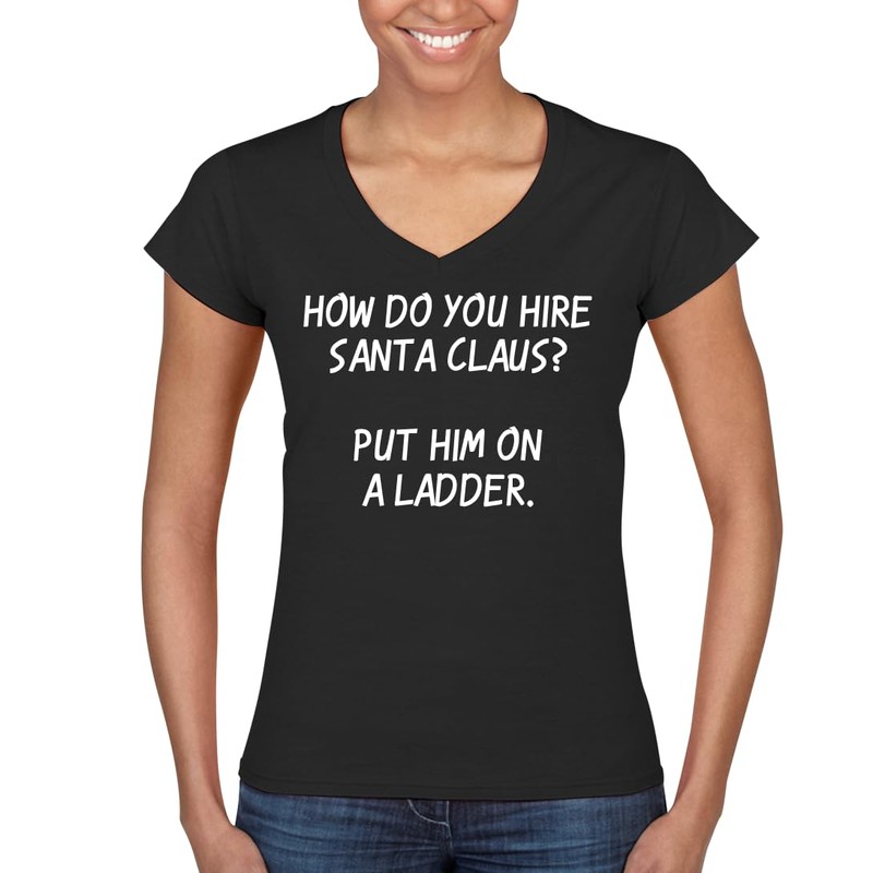 How do You hire Santa Claus? Put him on a Ladder. - Women's Ultra-Soft Deep V-Neck T-Shirt – Lightweight, Comfortable & Flattering Fit CP05 Black