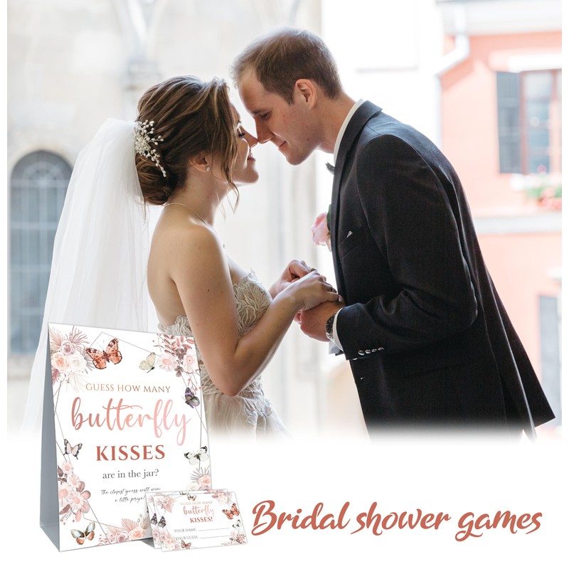 How Many Butterfly Kisses Bridal Shower Games, How Many Butterfly Kisses Standing Sign 50 Guessing Cards 180 Bridal Shower Kisses Stickers, How Many Butterfly Kisses Floral Bridal Shower Game Set