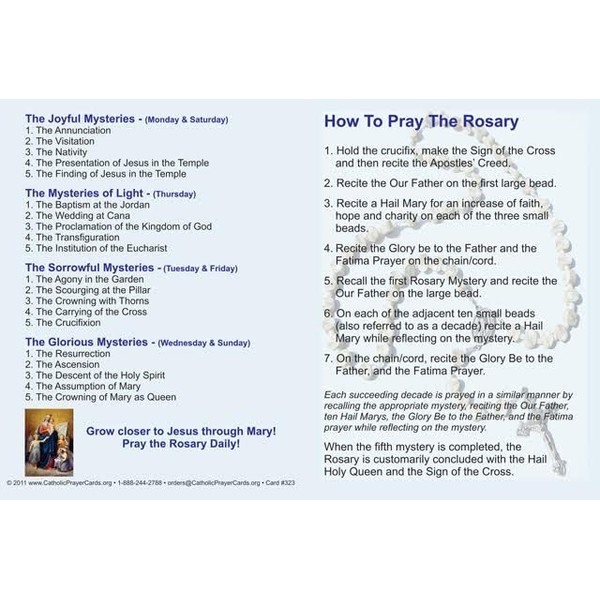 How to Pray the Rosary, Prayer Card (5-pack), with a Bonus Card of Jesus and the Footprints Story