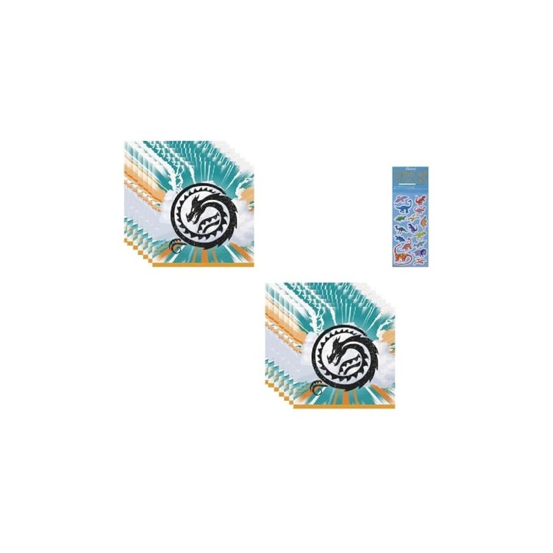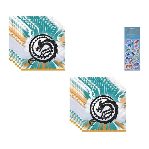 How to Train Your Dragon Birthday Party Supplies Bundle includes 32 Party Paper Napkins and 1 Dinosaur Sticker Sheet