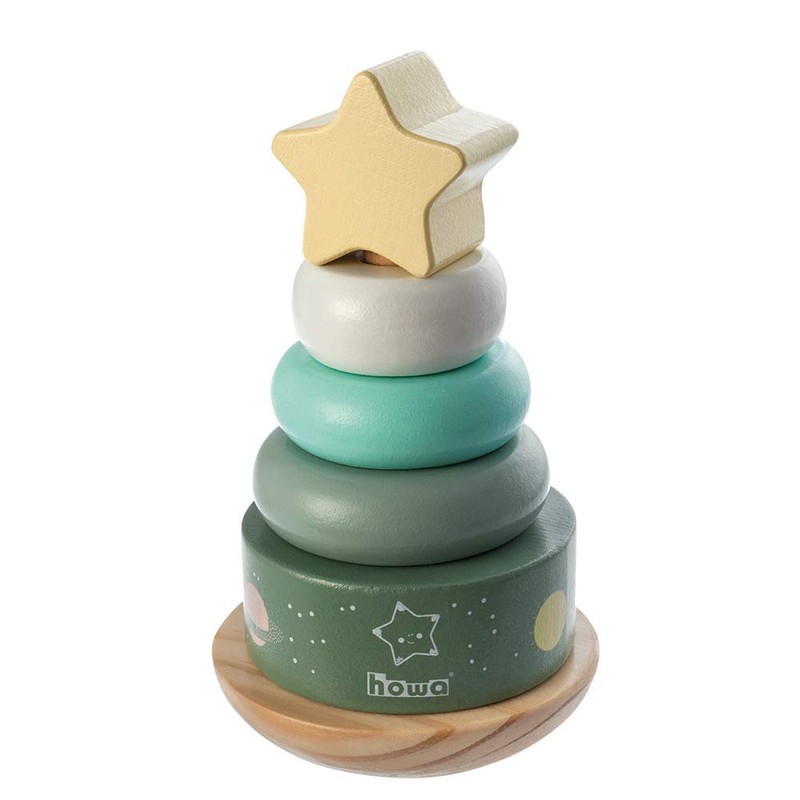 - The stacking tower "space" from howa in a modern colour design promotes fine motor skills and hand-eye coordination.