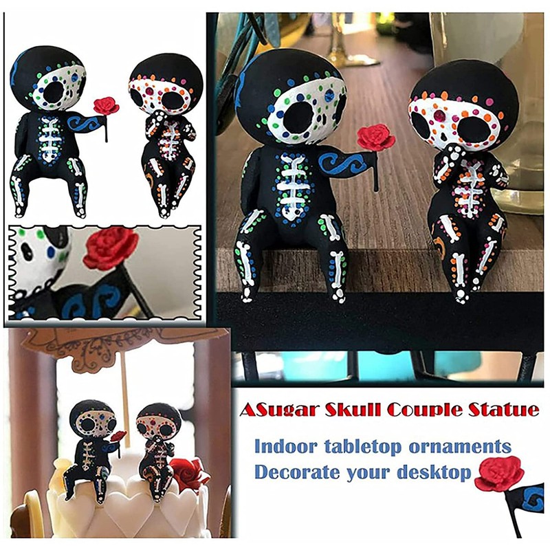 - ❤Sugar Skull Couple Statue Decoration, Collectible Hand Crafts Resin Ornaments, Cute Statue Skull Resin Skeleton Couple Figurine Gothic Lovers Wedding Statuette for Mother's Day gift Kids girls boys holiday Birthday Gifts lover gift handmade craft lovely art Figurines Soft Cute Resin Toy Desktop Decorations.