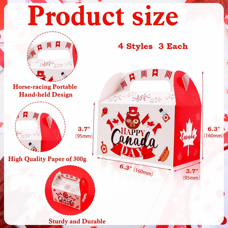 - 【Canada Day Party Celebration Design】 Our maple leaves gift boxes featuring red and white color, classic Canada Style, make your Canada Day Party a big hit! July 1th Canada Day boxes with handle design with maple leaves, firework, Canada flag, cute Caster fiber of Canada, I Love Canada, EH, Born in Canada, Canada day, Happy 1th of July! enough quantity and various styles for you to choose and use according to your favors.