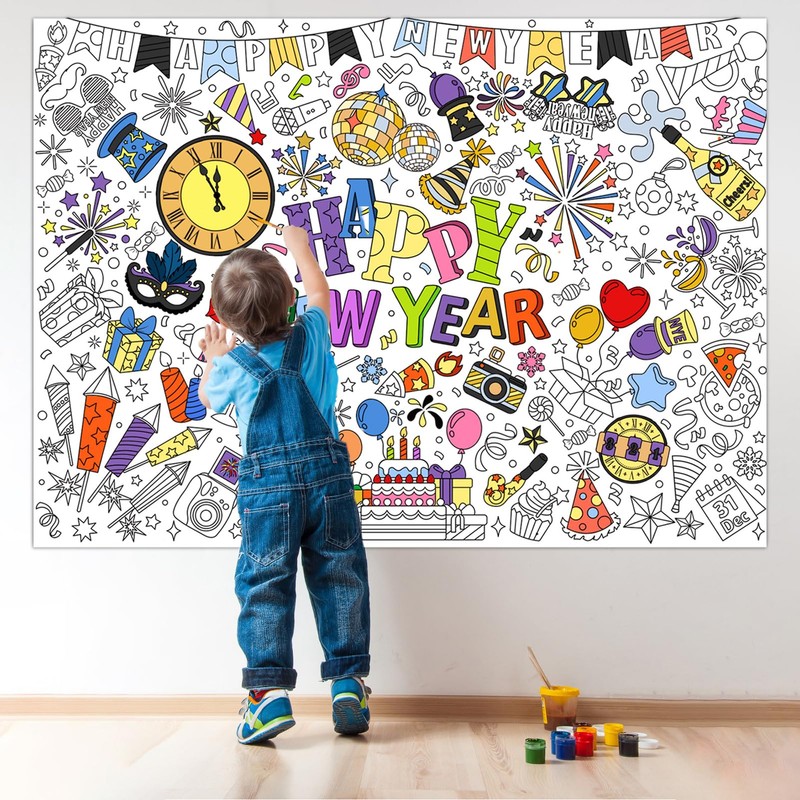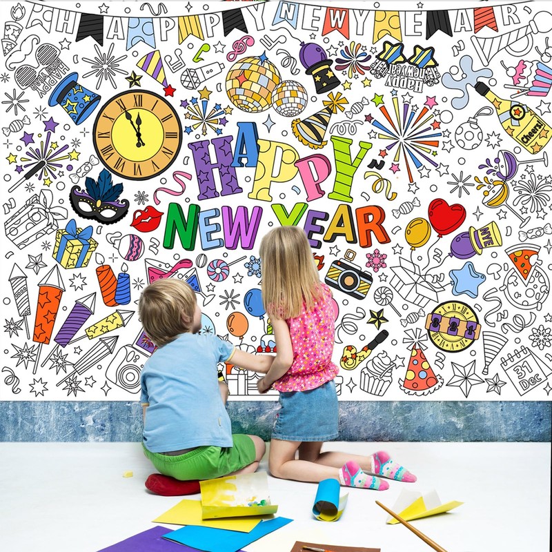 - High quality: the Happy New Year colouring tablecloth children with 24 different colors pens, and the poster is made of high quality paper, lightweight and strong, not easy to fade or tear. You can colour your own colouring poster and decorate your home, bedroom, classroom, wall or door wherever you want.