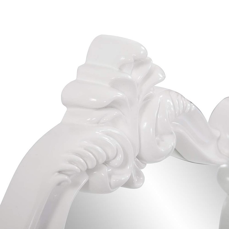 - EMBELLISHED ACCENTS - Decorative glossy white finish mirror is accented around the edges with ornate flourishes