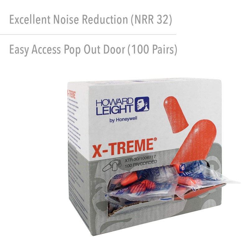 Howard Leight by Honeywell X-TREME Corded Disposable Earplugs, 100-Pairs (XTR-30)