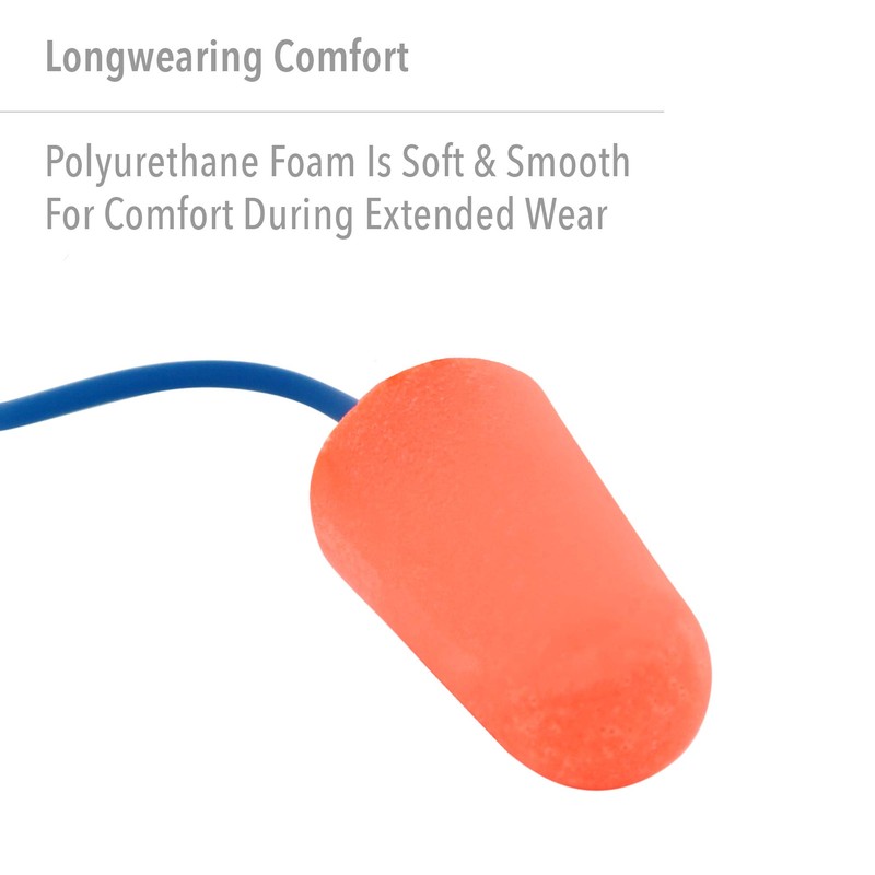 - CORDED FOR EASY WEAR: Cord drapes easily around neck to promote hygiene and help prevent loss; soft foam provides longwearing comfort; tapered design allows for easy earplug insertion & removal