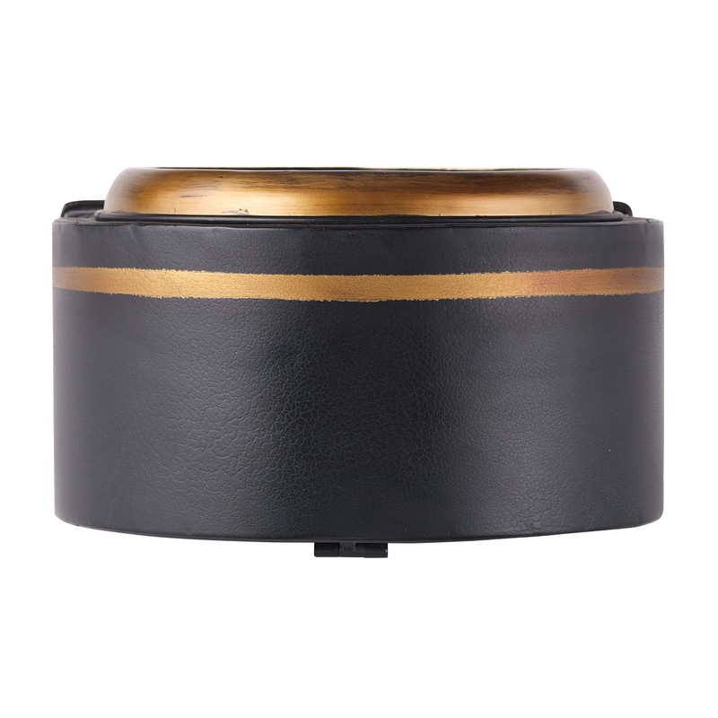 - Clock Design: This tambour-shaped metal accent clock features an antique black finish with antique gold accents throughout including a raised bezel and a stripe around the top and sides of the case