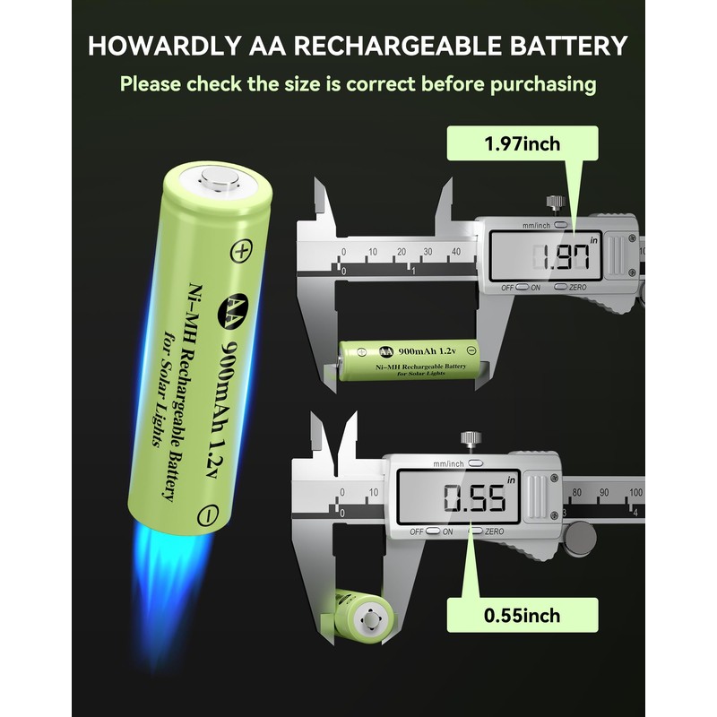 Howardly 1.2v AA Ni-MH Rechargeable Battery, Double A 900mAh 1.2V Rechargeable Battery Pre-Charged, High Capacity for Outdoor Solar Lights, Lawn Lamps, String Light (AA-900mAh-12pack