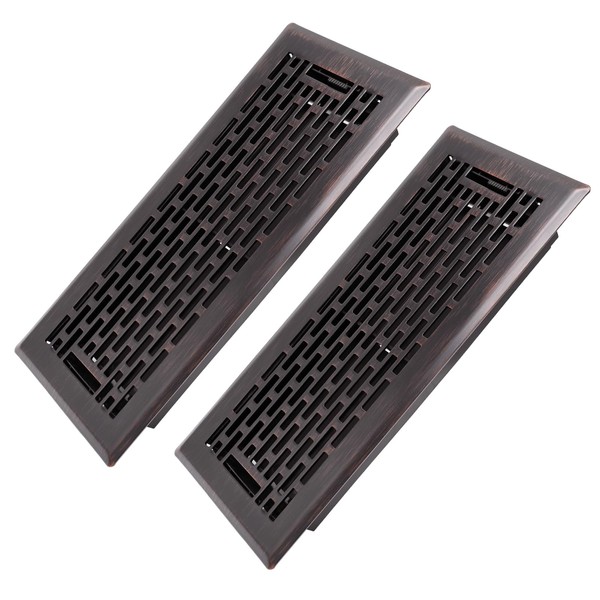 Howeall 4x10 Inches 2 Pack Heavy Duty Walkable Floor Register - Easy Adjust Air Supply Lever Decorative Floor Vent Covers - Boston Design Vent Covers for Home - Oil Rubbed Bronze