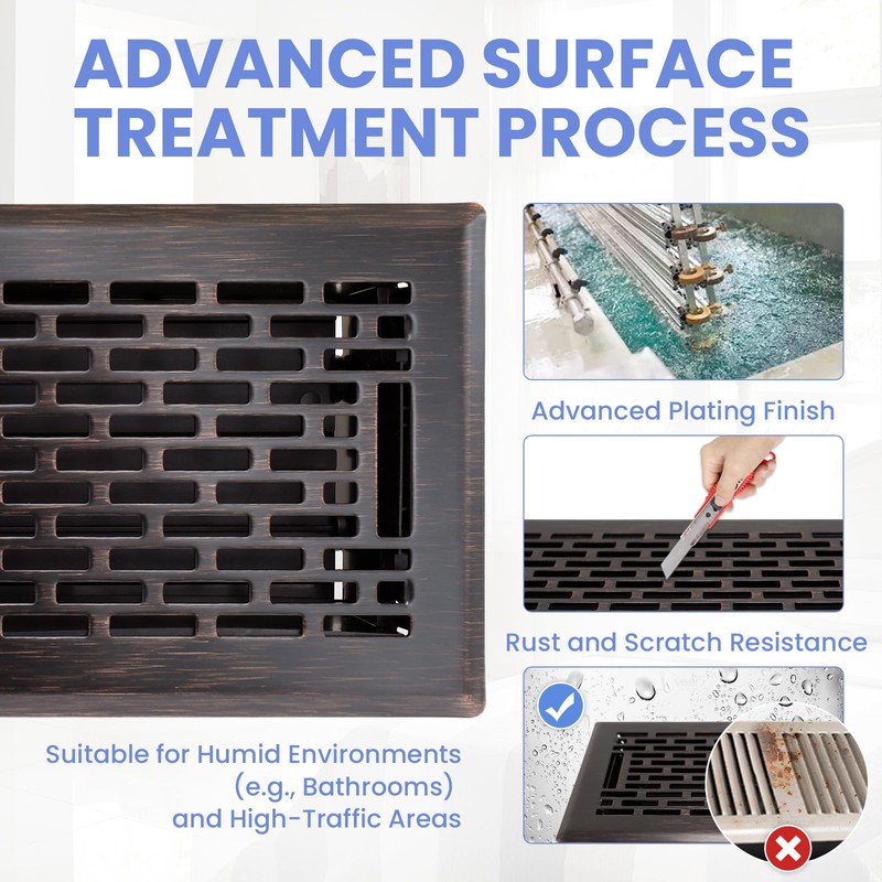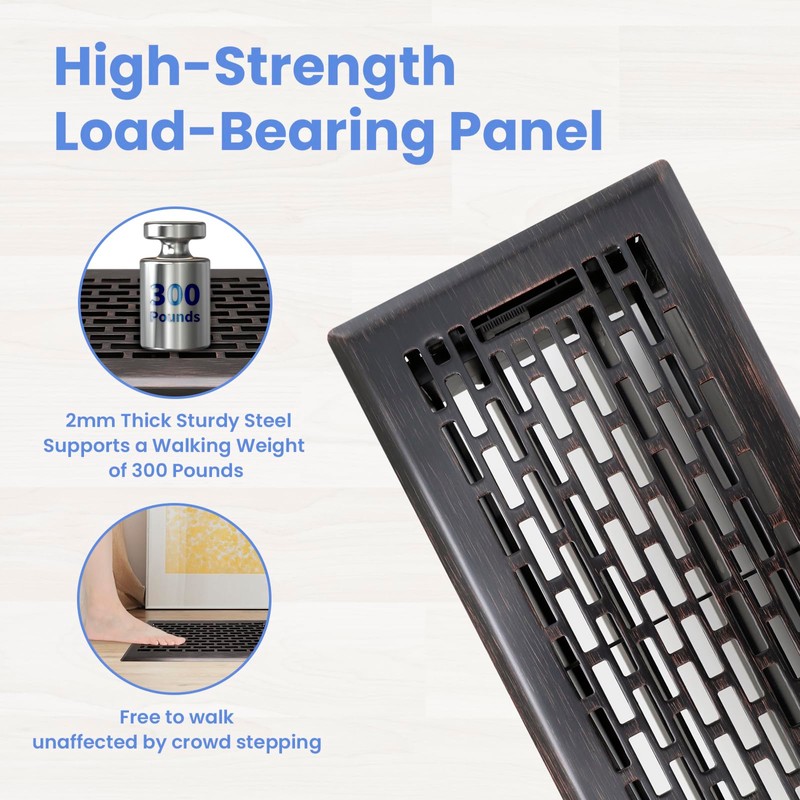 - Exceptional Strength & Durability: Our floor registers, crafted from robust 2mm thick steel, can withstand up to 300 pounds of walking weight. They feature a premium finish that resists rust and corrosion, ensuring long-lasting, reliable performance for your home.