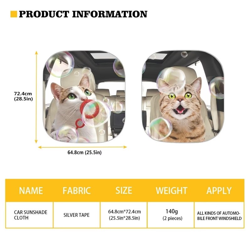 Howilath Funny Cat Car Sunshade for Windshield Heat Insulation, Novelty Blowing Bubbles Cats Couple UV Block-Out Universal Fit 2 Piece Sun Shade Auto Accessories SUV