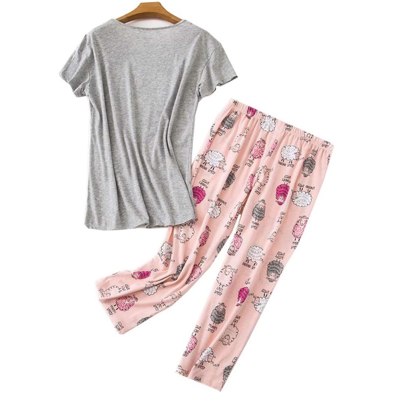 - 2PACK PAJAMA SETS FOR WOMEN: 2 pack pajama set,including 2 matching sets, Round neck or V neck sleep TOP, CAPRI pajama bottom with elastic waist. This contemporary & fashion pajamas set, painting in beautiful floral, adorable animal. This loose soft pajama set for women, making you more comfortable at night sleep.