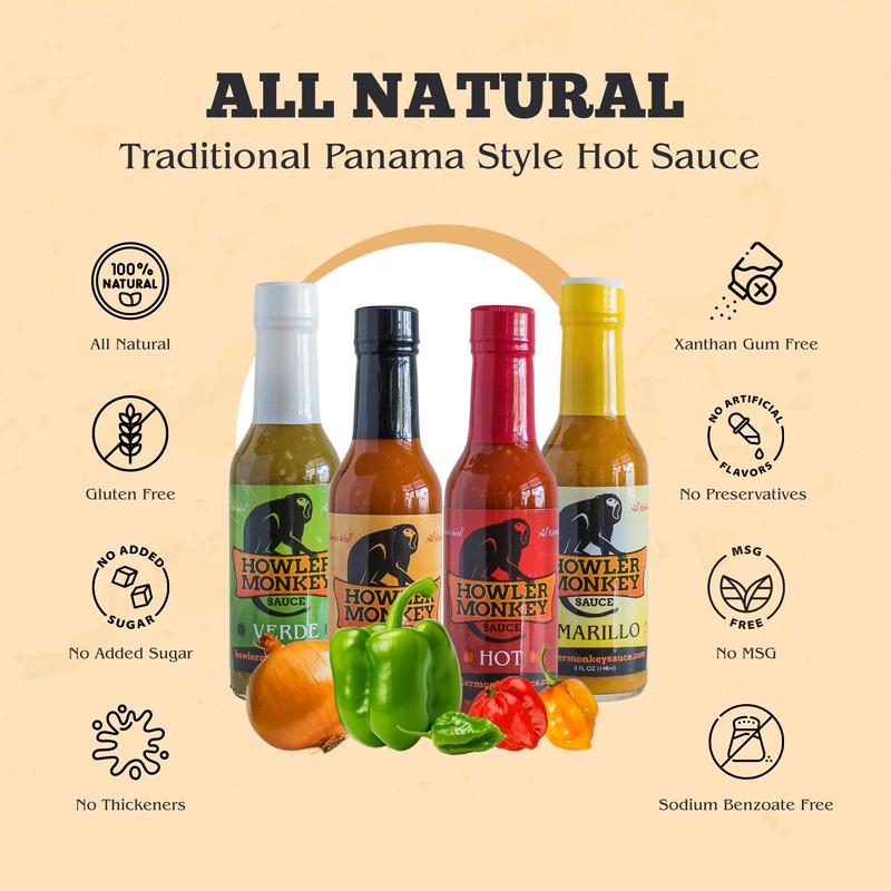- Variety Pack: Indulge in a rich assortment of flavors, featuring Original, Amarillo, Verde, and Hot Howler Monkey Sauce. Tangy kick or a fiery punch, this collection offers something to satisfy every palate.