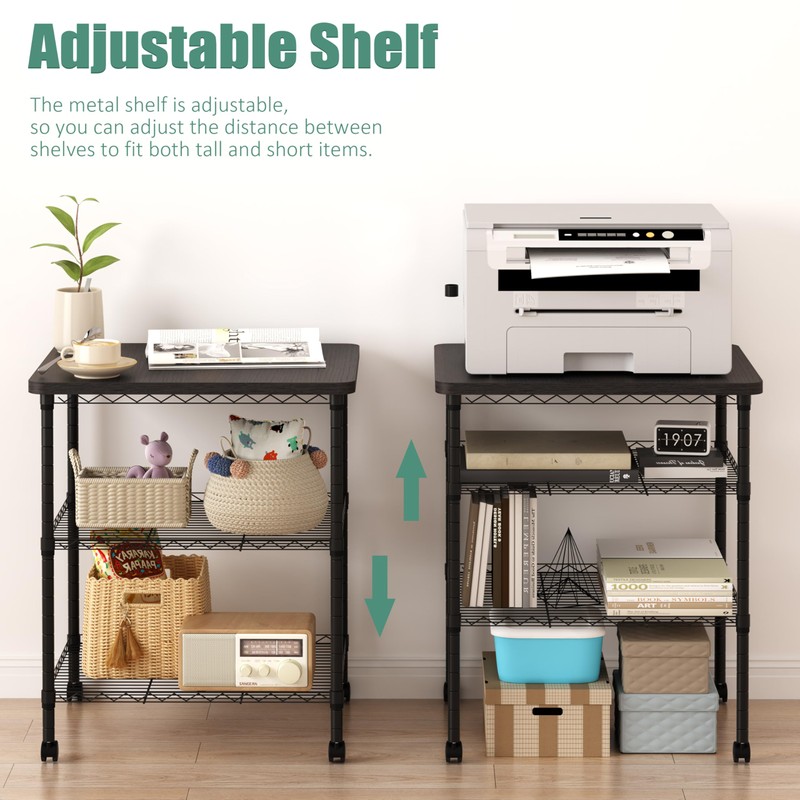 • Multi Scene Organizer: Not only can it be used as a printer table, it can also be used as a kitchen storage shelf, sofa side table, nightstand, etc. It is suitable for office, kitchen, bedroom, living room, which is an ideal storage shelf for organizing and storing. The simple space-saving design goes with almost any decor and never goes out of style.
