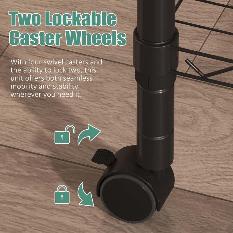 • Portable Office Cart: The printer stand is designed with roller wheels, which can be easily moved to any place. Four swivel wheels can rotate 360 degrees, two wheels can be locked to keep the stand stable. It provides higher security for your printer and other office equipment.