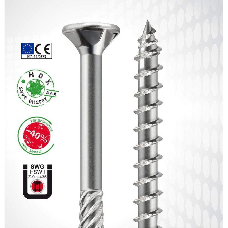 - The HOX professional screw with European technical approval is the optimal mounting material for building structures, furniture, skirting boards, formwork, fittings and panelling.