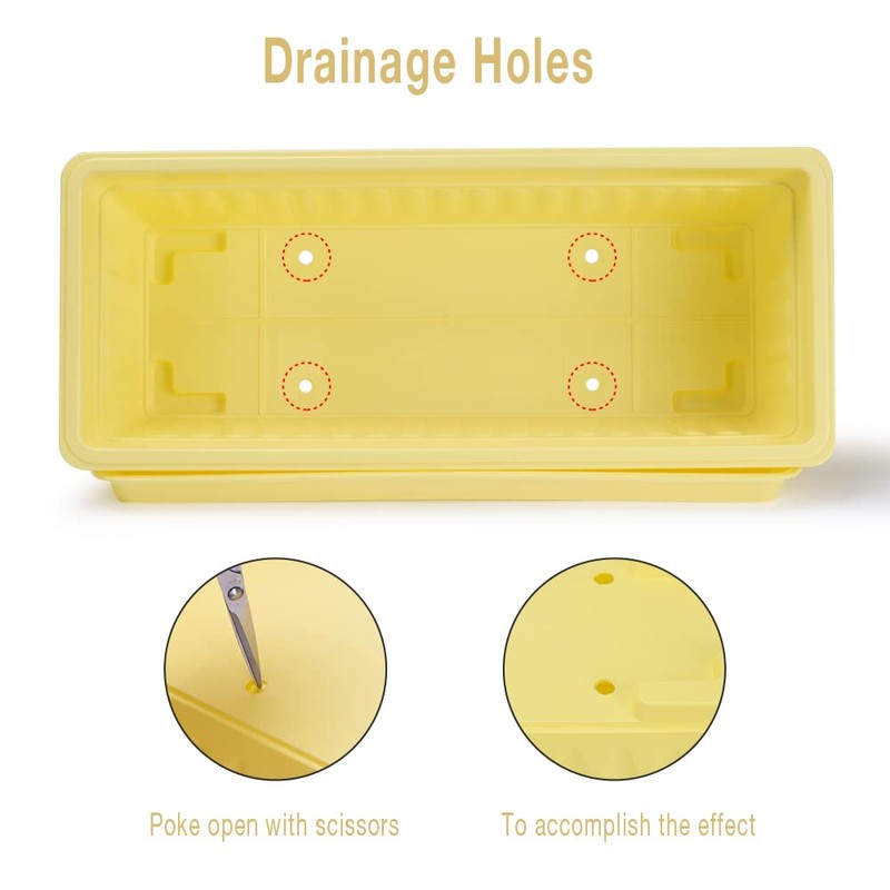 HOXHA 6 Pack Window Box Planter, 17 inches Plastic Vegetable Flower Planter Boxes with Tray, Rectangular Indoor and Outdoor Flower Pots for Windowsill, Patio, Porch, Garden Balcony