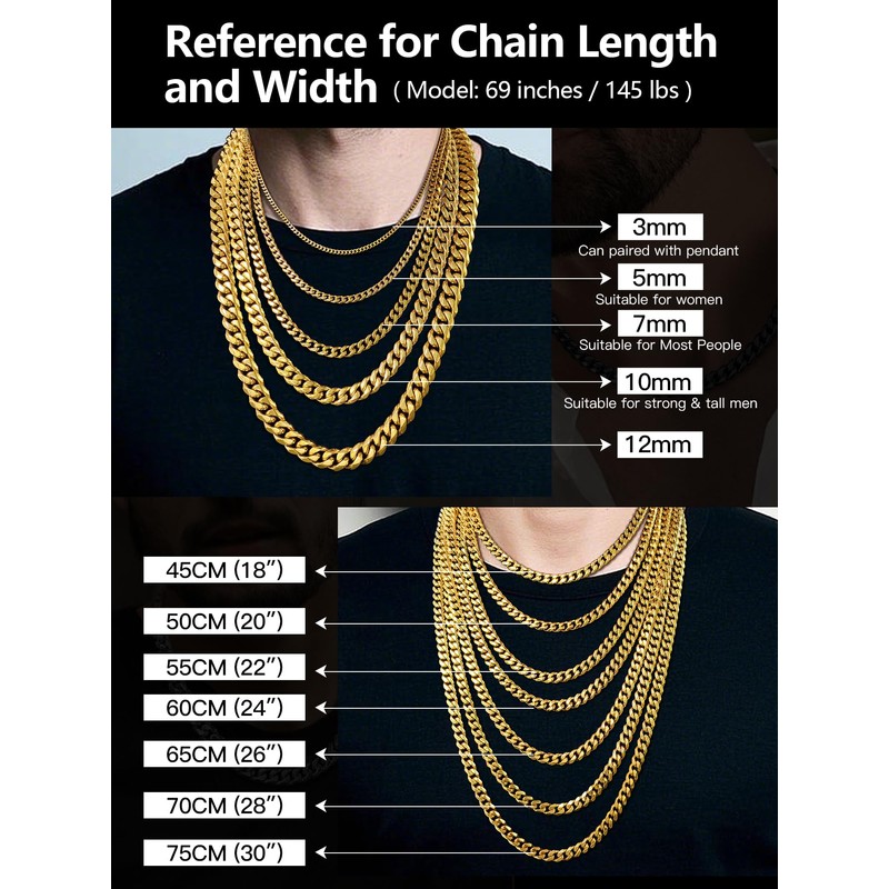 • Strong Cuban Chain Men Necklace: Durable & Nickel-Free & Anti-Allergies, The surface of curb chain necklace is comfortable and smooth and won't scratch your neck, these cuban chains choose from high-quality 316L stainless steel, lead and nickel-free Anti-Allergies for sensitive skin