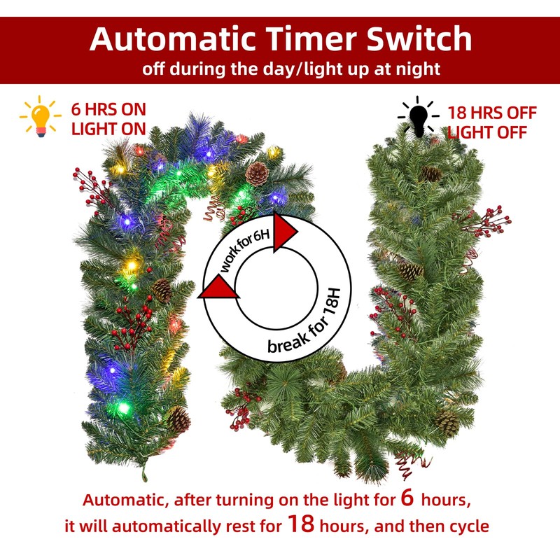 - 🎄2 Pack 9FT Prelit Christmas Garlands – Lush & Full: Get double the festive charm! Each 9FT garland features 165 PVC branch tips + 14 pine needles for a full, natural look. Perfect for decorating doorways, stair railings, mantels, and more this Christmas.