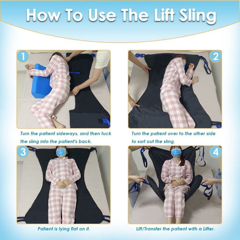 âś” The Full body Sling is constructed with 4 positioning straps which provides a safe weight distribution of the patient while also allowing more flexibility in positioning the patient in the sling.