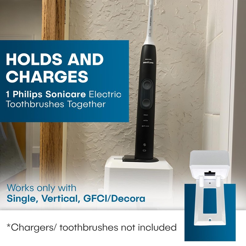 HOYT DESIGN Electric Toothbrush Holder | Wall Mount | Compatible with Sonicare Holds 1 Charger, Mounts on Single GFCI/Decora Outlet ONLY. (Charger/Brushes NOT Included) | White, PS1-G-SSV