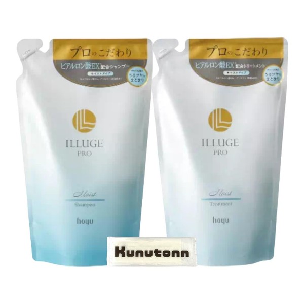 Hoyu Illuge Pro Moist Shampoo Refill, 13.5 fl oz (400 ml) + Treatment Refill, 13.5 fl oz (400 ml), 13.5 fl oz (400 ml), Set of 1 + Kunutonn Original Logo H Towel Included