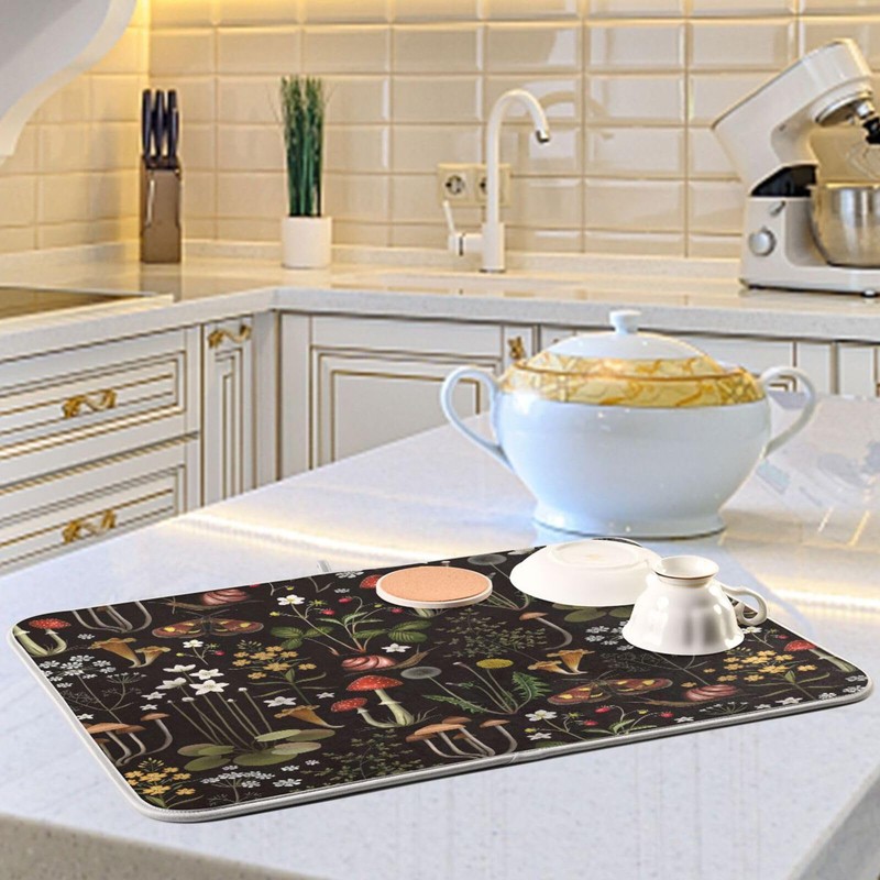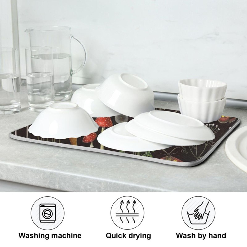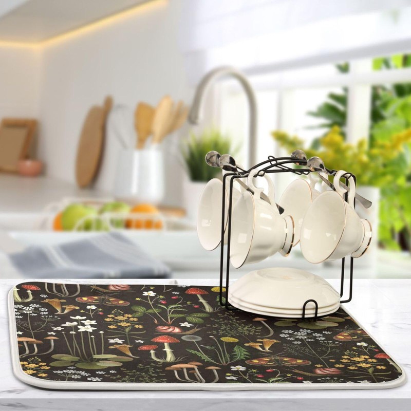 - Mushroom Dish Drying Mats: Made of microfiber, super absorbent and fast drying, non-slip, reversible; Large drying mat 18X24 inches