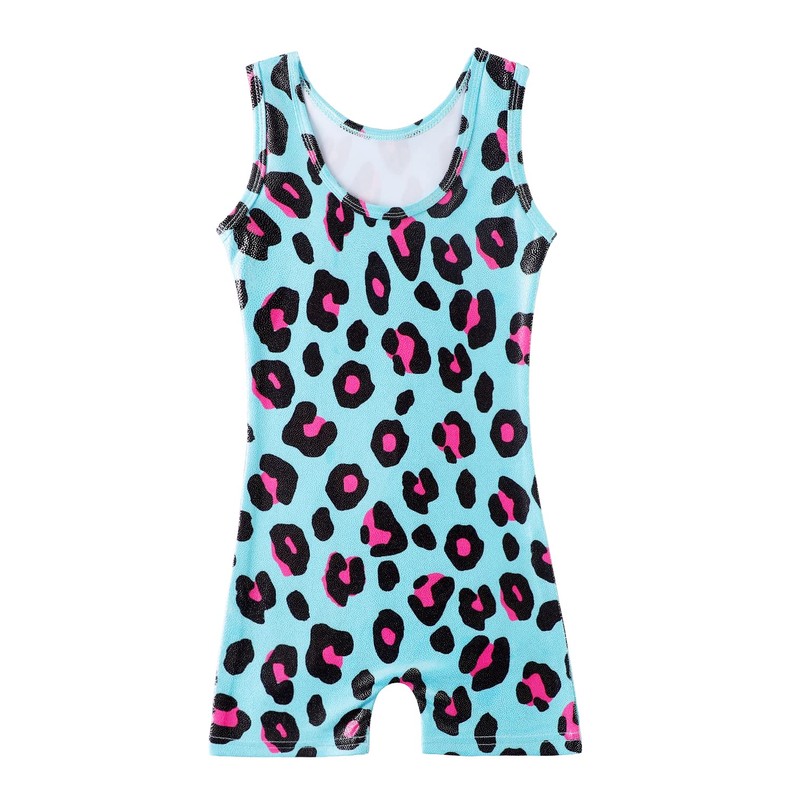 HOZIY - Maillot de gimnasia para niñas con pantalones cortos para niños pequeños, ciclismo, unicornio, arcoíris, dinosaurio, sirena, leopardo, flor galaxia, Aqua Blue Leopard, 3 Años/4 Años