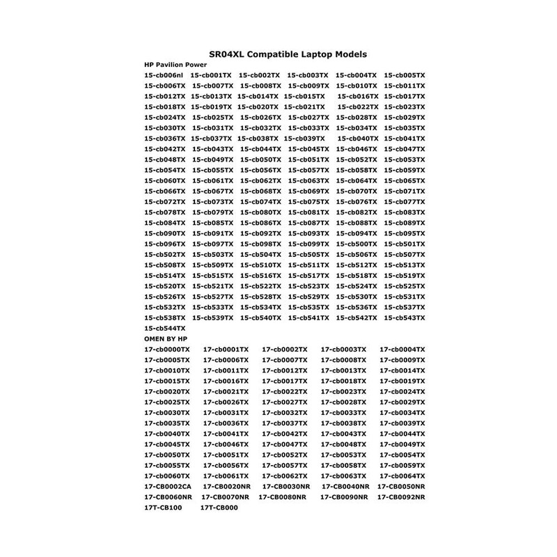 HP SR04XL 15.4V 70.07Wh Notebook Battery for HP Pavilion Power 15-CB000,Gaming 15-CX000,HP OMEN 15-CE000,15-DC0000,17-CB0000 PN : 917678-271 917724-855 917678-1B1 917678-2B1 HSTNN-IB7Z HSTNN-DB7W