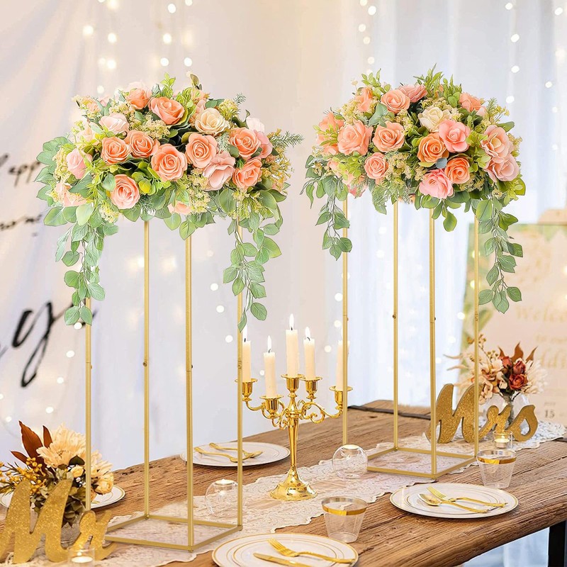 - 【Stable and Stylish】: Our wedding flower stand features a flat base and two top metal plates, ensuring stability and simplicity. It flower stands firmly on smooth, flat surfaces such as tables and shelves. The square pillar metal tube design further enhances stability, making it both practical and functional, adding a touch of romance to your weddings and other events.