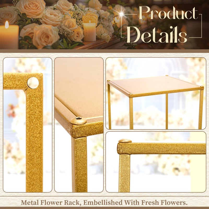 - 【Package Included】: You will receive 2 gold column flower stands, the package includes 8 x gold metal strips, 2 x square frame bases, 2 x metal plate tops, 2 x screw packs, installation tools. Each gold flower stand measures 11*11*31.5 inches. Suitable for weddings and events, artificial flowers are not included. Yo can place bouquets, garlands and other decorations on it.