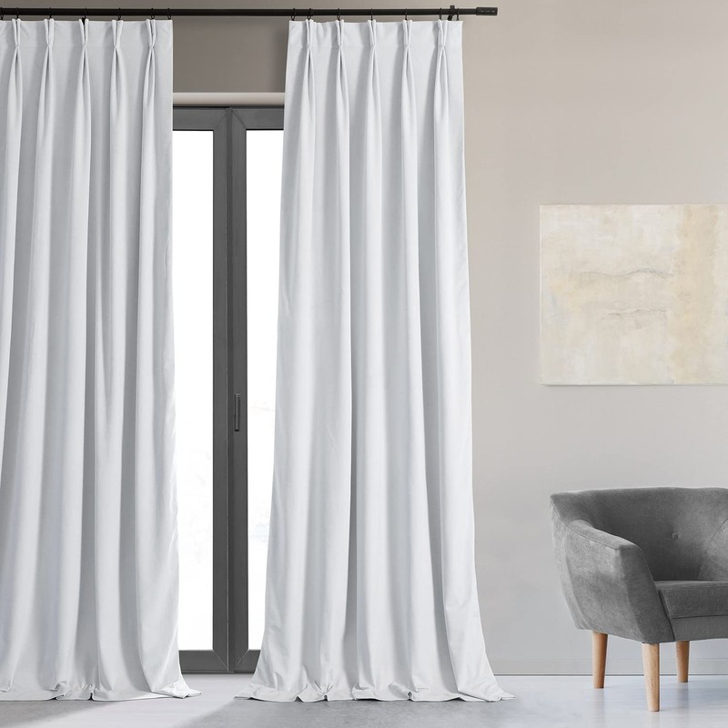 HPD Half Price Drapes Velvet Blackout Curtains/Drapes - 84 Inches Long 1 Panel Blackout Curtain Signature Pleated for Living Room & Bedroom - 25W X 84L, Primary White