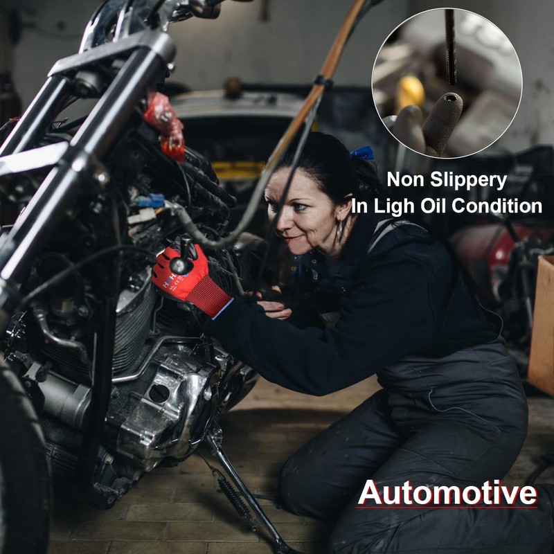 HPHST Work Gloves for Men-12 Pairs, Nitrile Coated Work Gloves with Grip, Touchscreen Gloves, Mechanic, Construction, Gardening, Woodworking, Oil Resistant Gloves (Red, Small)