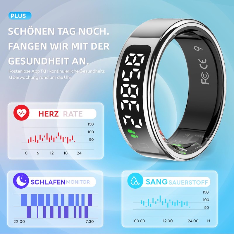 HPLSZCN Smart Ring Men's Smart Ring with LED Display, Fitness Ring Women, 5ATM Fitness Tracker Ring with Activity Tracker/Heart Rate/SpO2/Sleep/Remote Controlled Photography iOS/Android (Silver, 11)