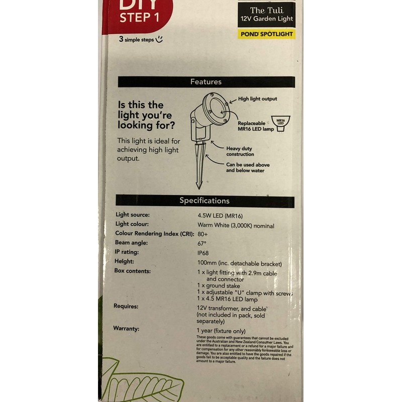- Requires AC garden light transformer and cable to operate