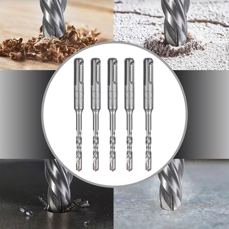 - 【5PCS SDS-Plus Rotary Hammer Drill Bits】 Included sizes - 6mm x 110mm. The drill bits working lenghth is 50mm, so you can drill all common dowel holes.(In order to protect your machine and personal safety, please don't use a three-claw impact hand drill to drill holes!)
