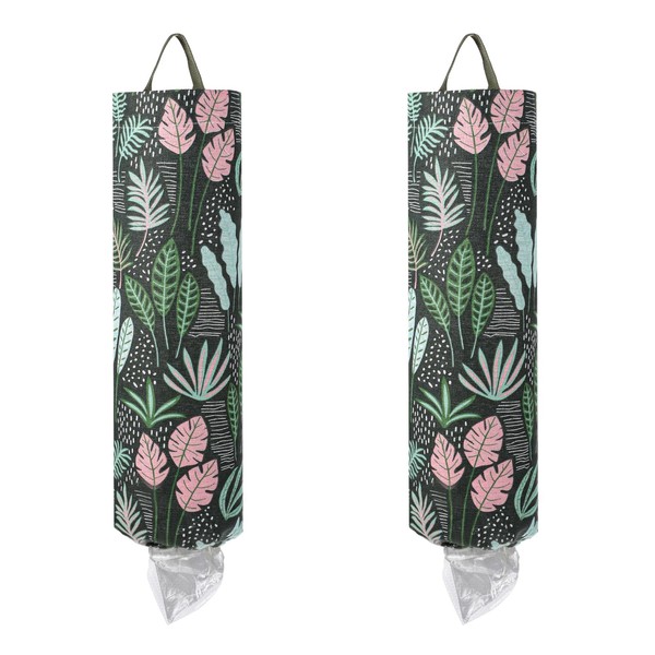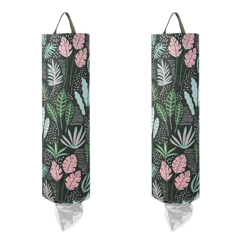 2Pcs Plastic Bag Holder, Dispenser Holders Reusable Grocery Bag Organizer Wall Mount Free Adjustment with Drawstring Closure Waterproof Washable Storage(Seaweed)